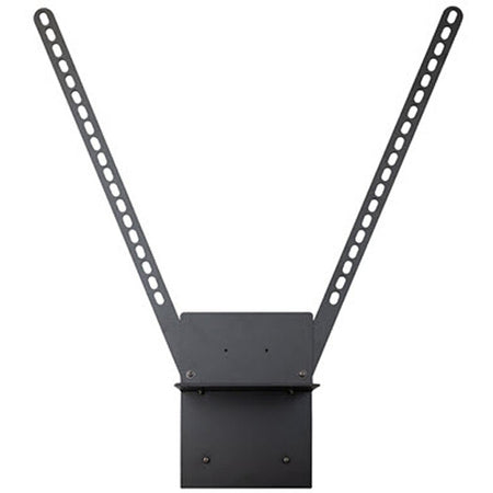 Mount your ClickShare bar and/or your base unit onto the top or bottom of your conferencing TV with this ClickShare Bar TV Mount from Barco. The V-shaped mount secures onto the back of your monitor using its VESA threads, and multiple sets of screws and hardware are included for different TVs and configurations.