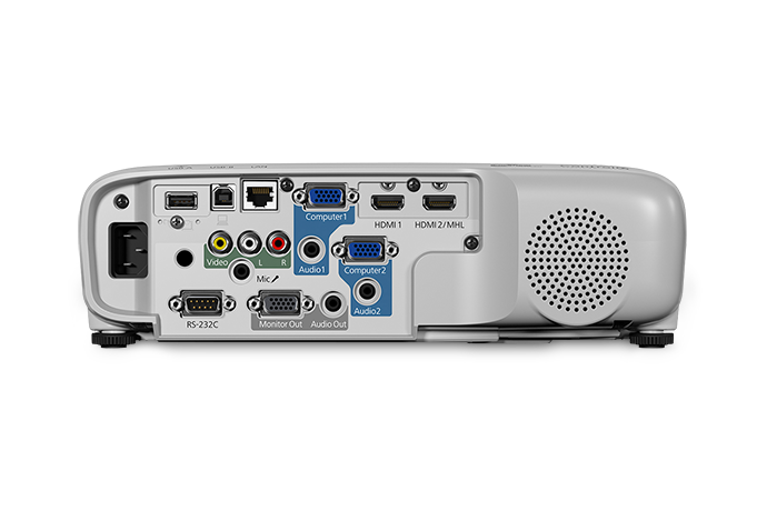 The PowerLite 118 features composite video, two HDMI, and two VGA inputs to support various source devices. The projector also accepts video signals via USB Type-B from Windows and Mac computers. A VGA cable and an IR remote control are included as an added convenience.